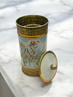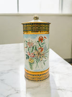 Ancienne boite à biscuits ou chocolats en fer blanc lithographié, Victoria, motif floral