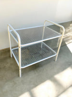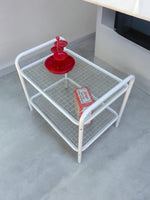 73x50x67cm, meuble d’appoint tubulaire en métal blanc de la marque Emu, verre quadrillé et signé.