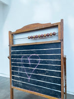 Ancien tableau d’écolier avec boulier en bois intégré,