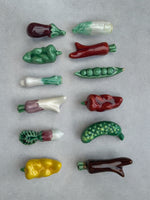Suite de 12 porte-couteaux en faïence légumes.