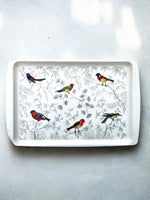 joli plateau en plastique sur un thème toujours apprécié : les oiseaux.