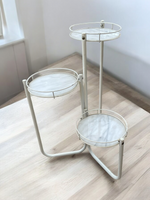 H65 cm, envergure totale 50 cm, diamètre des plateaux 23 cm.