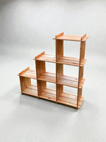 Avec sa silhouette en escalier et son pin massif à la belle patine, cette bibliothèque (robuste ! Elle ne bouge pas d’un poil) évoque pleinement l’esprit Maison Regain.