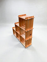 Ses niches ouvertes accueillent livres, objets et plantes tout en structurant possiblement l’espace.
