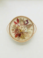 Ce plateau vintage en rotin semble tout droit revenu d’une balade entre sous-bois et clairières, avec sa délicate inclusion de fleurs séchées.