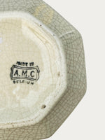 Pique fleurs des années 1930, Art déco, en faïence craquelée beige, fabriqué par AMC (August Mouzin & Compagnie). Il est en excellent état. H et L 12 x 13 cm (centre) / 9 cm (base).