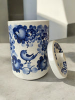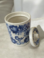 Très jolie boîte à bonbons/sucre céramique faïence craquelée décoré à la main avec des fleurs et oiseaux bleus