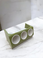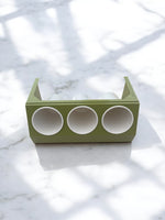 Range-bouteilles vintage Ninka des années 70, en plastique vert et blanc, 3 compartiments.