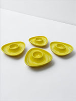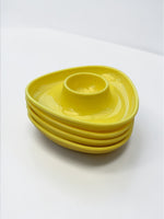 Lot de 4 coquetiers vintage des années 70 au design triangulaire en plastique et à la couleur jaune pop ultra lumineuse. Leur forme originale apporte une vraie touche rétro à la table du petit-déjeuner.