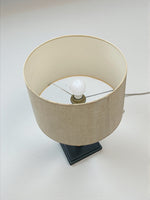 Son abat-jour en lin, dans une teinte neutre, diffuse une lumière douce et chaleureuse, parfaite pour une ambiance feutrée sur une console, un bureau ou une table de chevet.