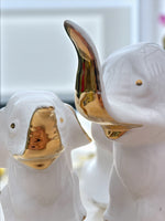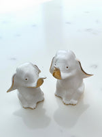 Statuettes éléphants porcelaine blanche et dorée années 60