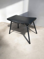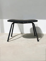 Tabouret ou repose-pied  « Taureau » de Pierre Guariche, édition Meurop, années 50. Piètement métal noir, assise en vinyle noir.